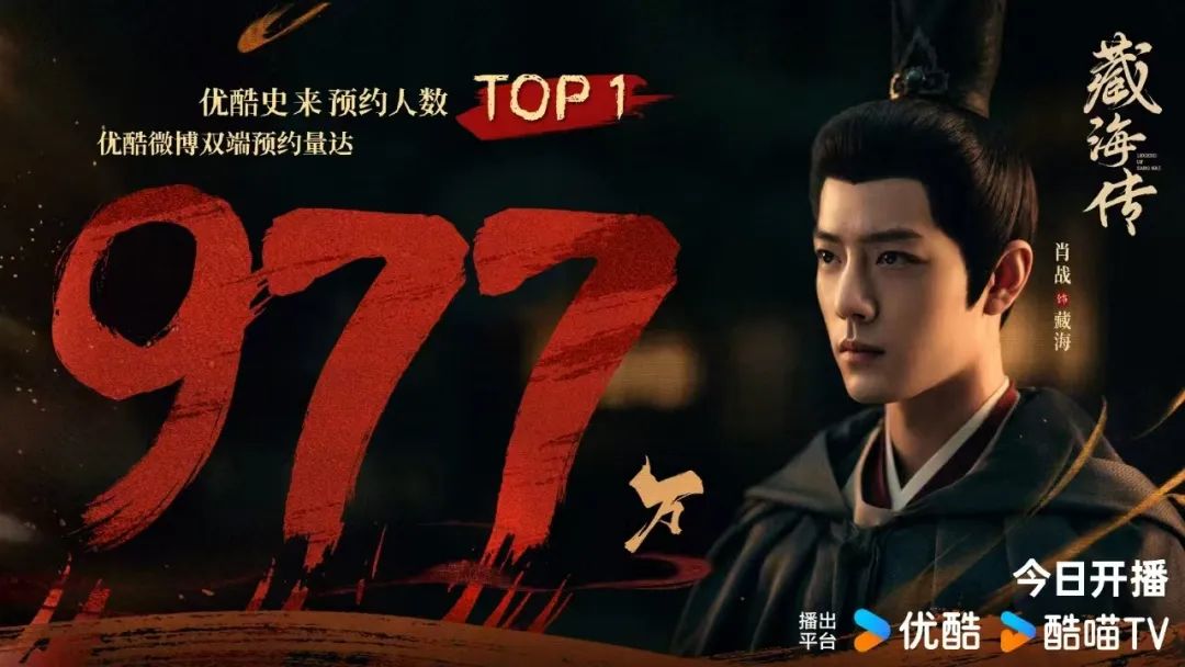 优酷的《藏海传》从官宣定档至播出,一直处于被高度关注的状态,预约量已破900万,超过了一季度优酷爆款剧《难哄》792万的历史最高预约量。导演郑晓龙带着《甄嬛传》的权谋基因,再加上顶流肖战首次挑战复杂角色,粉丝狂欢的声浪几乎淹没所有质疑。