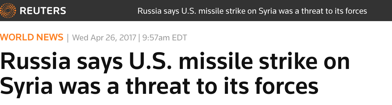 绍伊古说,美国针对叙利亚政府“致命化学武器”的袭击“粗暴地违反了国际法”。美国官方当时表示,在袭击前已通知俄方,没有俄罗斯人员受伤。
