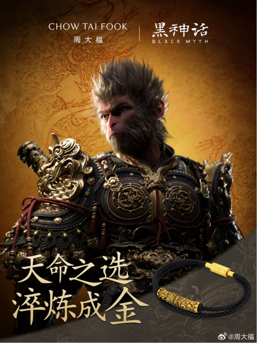 AI设计的介入更进一步释放创意潜能,比如周大福开发的智能设计系统可基于IP角色特征自动生成千种设计方案,将设计师从重复劳动中解放,转而专注文化符号的深度挖掘。这种技术融合不仅降低了创新成本,更让《黑神话:悟空》联名款中精细至发丝的战斗纹饰成为可能。