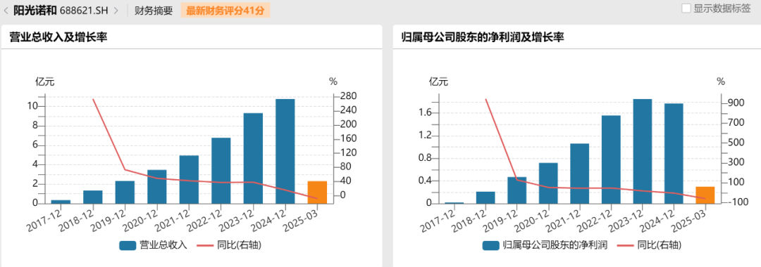 2024年,阳光诺和营收增速为历年最低,净利润为首次出现年度下滑。进入2025年,阳光诺和业绩依然难言轻松。