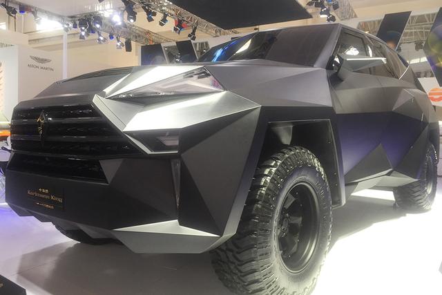 作为压轴出场的这辆车,是国内一家名为阿尔曼的公司的产品,这款科技感强烈的外形,其设计出自一名清华大学生之手,据说这梦幻的造型可以对雷达隐形,老高初中没毕业,就不去研究这个可靠性了。另外这款车售价高达1200万RMB,可以说是有史以来最贵的国产车了。不过,实际上它是基于福特F-450地盘打造的,搭载6.8L V10发动机。