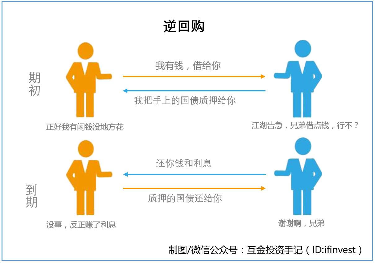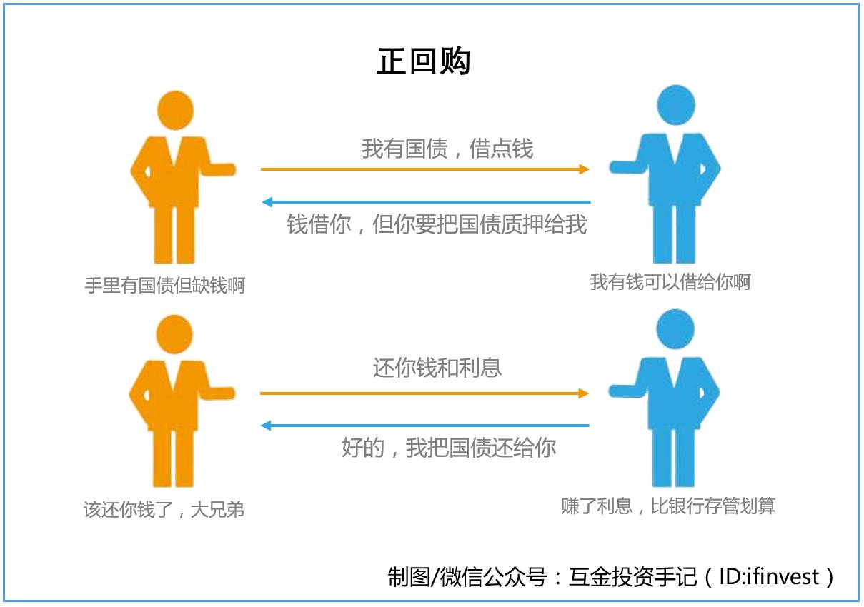 而正回购是手里有国债但没钱,质押国债获得资金并付出利息,如下图所示: