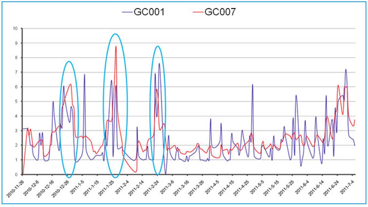 从下面的统计图也可以看出,最为活跃的1天期(GC001)、7天期(GC007)两个品种在年末、春节、半年末的收益较高,而且1天期的收益率多数时间高于7天期的收益率。