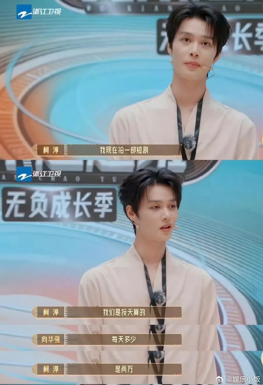 作为短国“飞升”第一人,柯淳又是上杂志、宣商务,又是亮相演技综艺、开工作室。正是在演综《无线超越班3》中,柯淳向导师们介绍了竖短演员片酬按天算的情况,并直言自己目前对外报价两万。