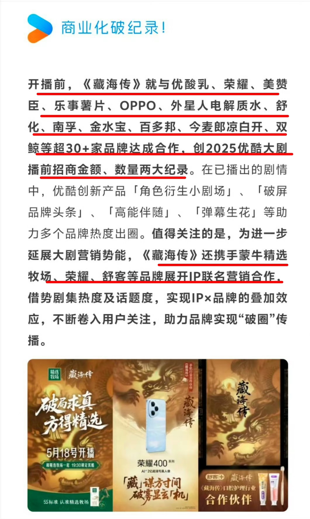 其中,优酷不仅储备数量相对更突出,覆盖题材类型也相对更多元。这意味着,《藏海传》给优酷带来的不仅是眼下的“靓丽”,更为其在这一赛道的长远布局写下了一份极具战略价值的序章。