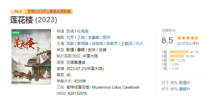 2023年,凭借“武侠+探案”的类型创新、立体的角色塑造以及极致的制作水准,爱奇艺与欢瑞世纪共同出品的《莲花楼》在激烈的暑期档剧集竞争中独树一帜,不仅打破了男频剧“口碑热度难两全”的集体困境,更展现出了令人钦羡的超强吸金能力和长尾效应。