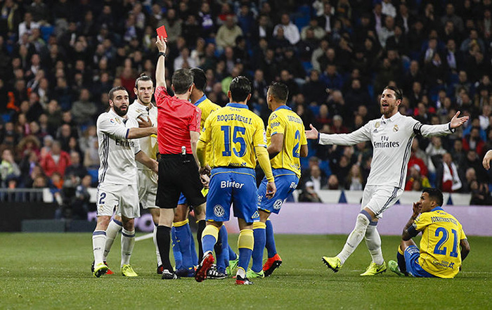 贝尔可能很少观察自身。主场面对拉斯帕尔马斯时,贝尔踢了乔纳森·比埃拉,并用胸口冲撞对方,这是一个很不理智的行为,他也因此被红牌罚下。这是他自2008年10月之后的第一张红牌。