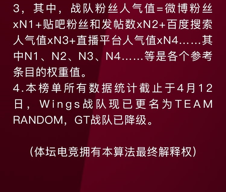 2017年4月18日,由《体坛周报》官方客户端“体坛加”推出的“中国电竞俱乐部品牌价值榜”正式发布。