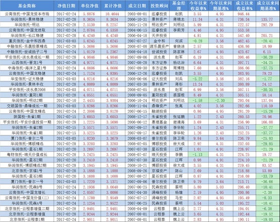 除了前三甲外,“平安信托—淡水泉成长一期”和“平安信托—淡水泉2008”表现也不错,两只分别以4.9846和4.0711的累计净值跻身排行榜前15位。