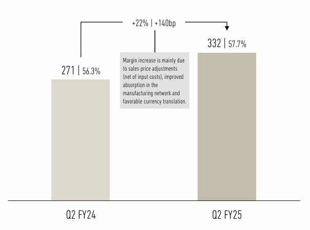 与此同时,公司因垂直整合生产体系使单位成本下降3.2%。在产品售价提升和成本有效控制的情况下,2025第二财季,Birkenstock的毛利率较上年同期增长140个基点至57.7%;净利润增长47%至1.05亿欧元。
