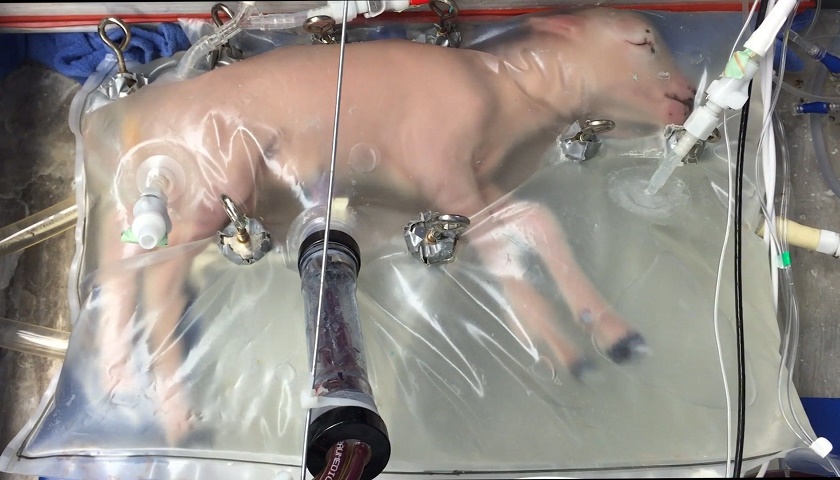 美国费城儿童医院研究人员用塑料做成类似子宫的容器,在其中注入温水和盐,模拟孕期子宫羊水。从母体剖腹取出的早产羔羊被立即置入人造子宫中,如在母体内一样吸入并吞下其中液体。人造子宫接有专门管道,每天注入定量“羊水”,确保生活其中的羊羔获得新鲜供给。