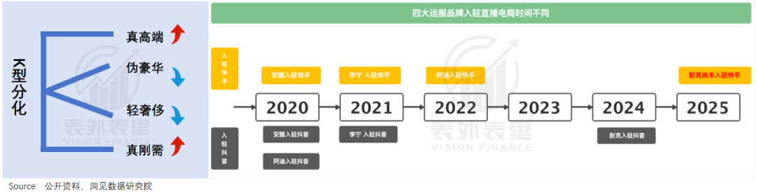 而在耐克靠复刻“躺赢”的时候,安踏、李宁等一众本土品牌,则迎着消费的K型分化,通过线下、短视频、直播间“整活”,上探下挖卷到飞起。
