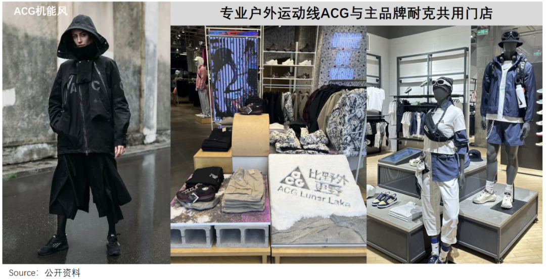 和各个品牌“自立门户”的安踏不同,ACG更多是作为生活户外场景,与跑步、篮球、足球等运动的产品一起,挂在耐克的货架上。