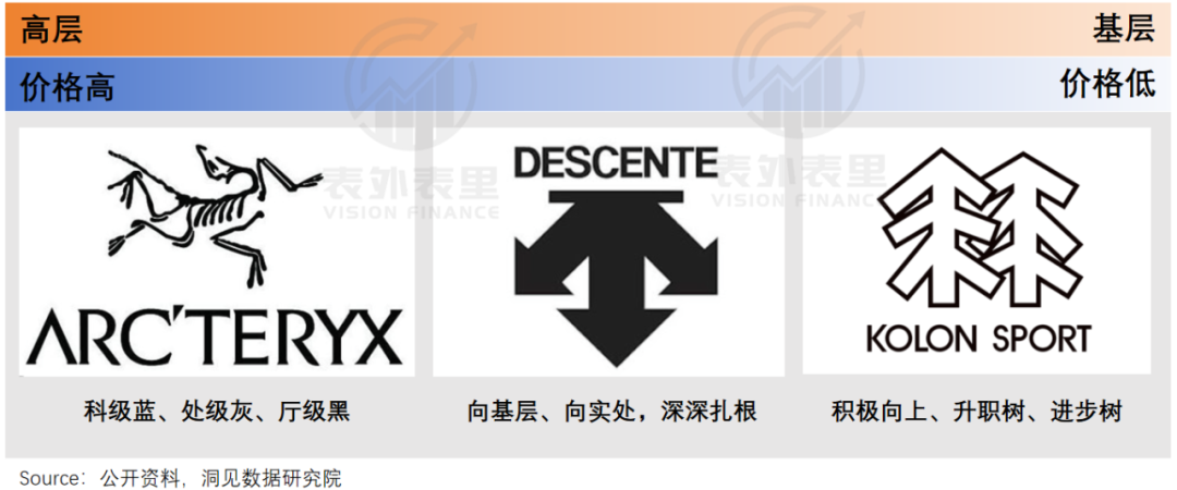 比如,始祖鸟靠“体制内穿搭”意外走红后,安踏立马发动可隆、迪桑特等品牌,围猎在性价比消费浪潮中硬撑“体面”的上岸人:定价为始祖鸟20%-30%,价格隔离被包装成“年轻公务员拿捏分寸感”;广告与玄学挂钩,logo变成奋斗文化阅读理解题。