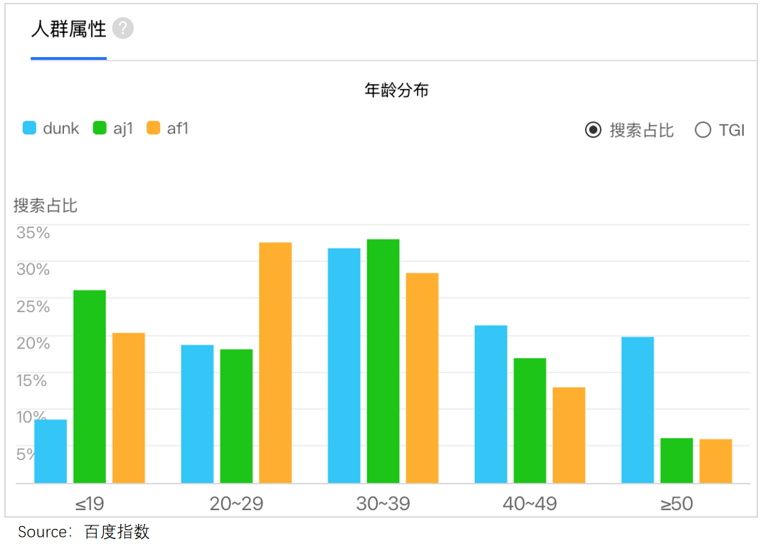 这让延续以往的答案,恐难续写当年的辉煌。可以看到,这一轮复刻潮里,AJ1、AF1、Dunk的关注人群还是那些80、90后等老粉。