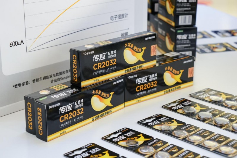 展会现场,南孚集团的展位无疑是最具人气的区域之一。爱掌门与传应两大品牌联合参展,以独特的展位设计和深厚的科创实力,吸引了众多厂商与锁匠师傅的驻足围观。其中,传应凭借首创的石墨烯纽扣电池,收获了众多关注。传应石墨烯纽扣电池,独特添加了石墨烯材料,大幅提升能量利用效率,并通过专利结构设计,进一步提高能量物质装载,实现高达240mAh的超大容量,令一颗电池即可使用三年,大大减少了更换电池的频率,为客户节省了时间和成本。