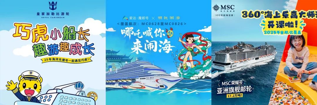 2024年暑期,中国邮轮市场就出现了低价甩舱现象,部分航线价格跌幅高达30%-60%,不乏有公司一个暑期亏损几百万元。在经历价格崩盘后,皇家加勒比邮轮、MSC地中海邮轮、爱达邮轮等多家邮轮公司通过降低定价,限时优惠折扣,比如“第三第四人免船票”,套餐中增加免费wifi等营销策略,刺激用户提前预订。