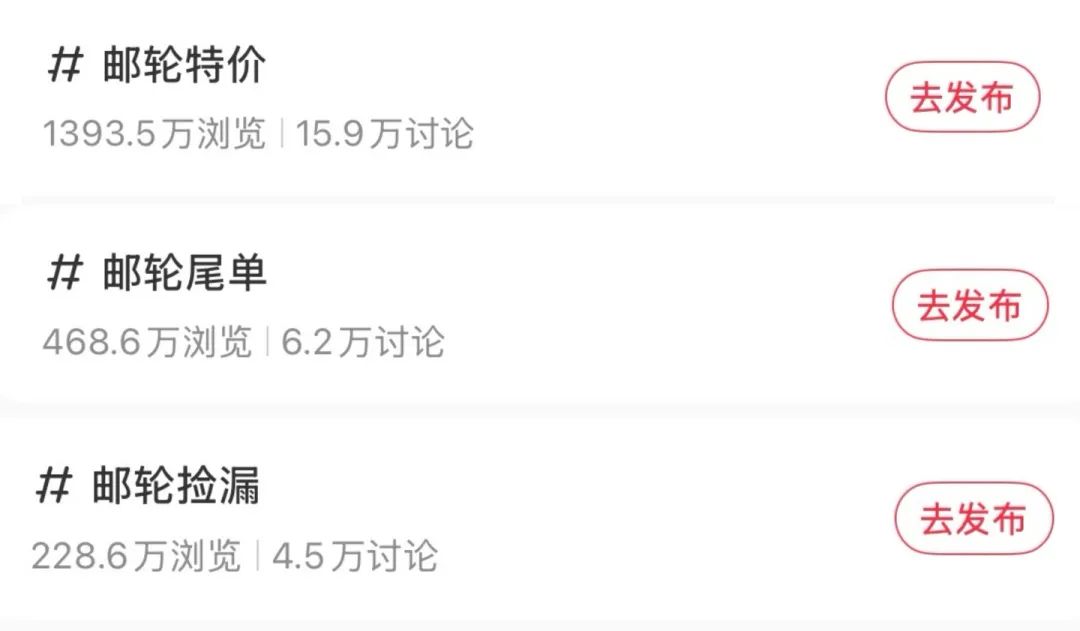 价格因素是制约邮轮旅游普及的首要障碍。即便是在促销季的尾单价格,每位游客的船票支出也至少需要2000元左右,而且需要时刻关注促销信息。在小红书等社交平台上,#邮轮尾单、#邮轮捡漏等话题的浏览量已超过200万次,这反映出消费者对优惠价格的强烈需求。
