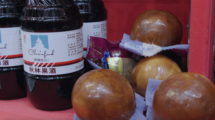 界面黑龙江:请给我们介绍一下秋林公司展厅现场的各类产品。