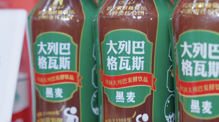 展厅负责人:企业现存九大类300多种产品,这次重点展示四大非遗——大列巴、黑豆蜜果酒、格瓦斯和果酱制作技艺。官网和线下门店展示更全品类,但非遗产品是品牌的DNA,具有不可替代的传播价值,这些产品也不仅是技艺的传承,更是哈尔滨多元文化的历史见证。