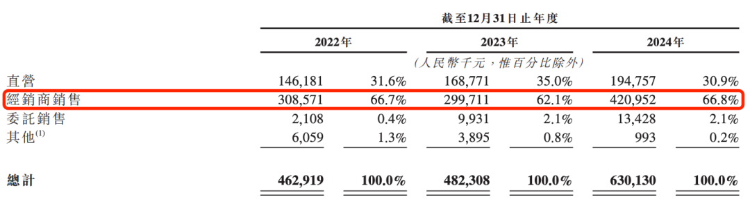 52TOYS现在大部分收入来自经销商,2022年-2024年,这部分收入占比分别为66.7%、62.1%及66.8%。截至2024年12月31日,52TOYS在中国有336家经销商。