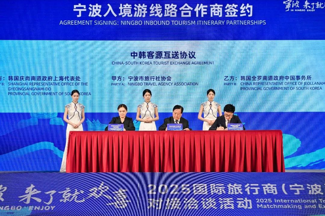 一是中韩实现双向赋能。宁波市旅行社协会与韩国庆尚南道省政府上海代表处、全罗南道省政府中国事务所达成战略合作,双方将就线路研发、商务访问、旅游接待等多方面开展经贸合作交流。