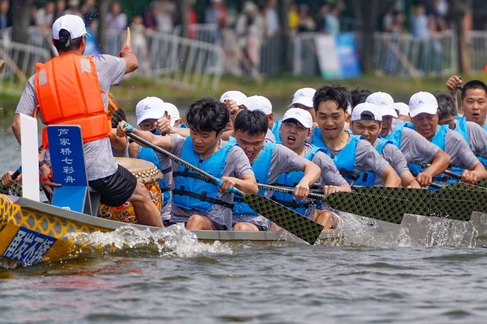 上午8点30分,龙舟争霸赛准时拉开帷幕,两岸早已聚满翘首以盼的观众。“咚!咚!咚!”随着铿锵有力的鼓声响起,一艘艘龙舟如离弦之箭,飞驰而出,选手们的臂膀跟着鼓点整齐起落,桨叶翻飞间溅起层层水花。
