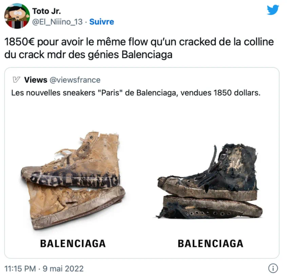 所以回头再看巴黎世家此前推出的天价“丑货”,就能深度感知到作为平民消费者的漫天讨伐与调侃。