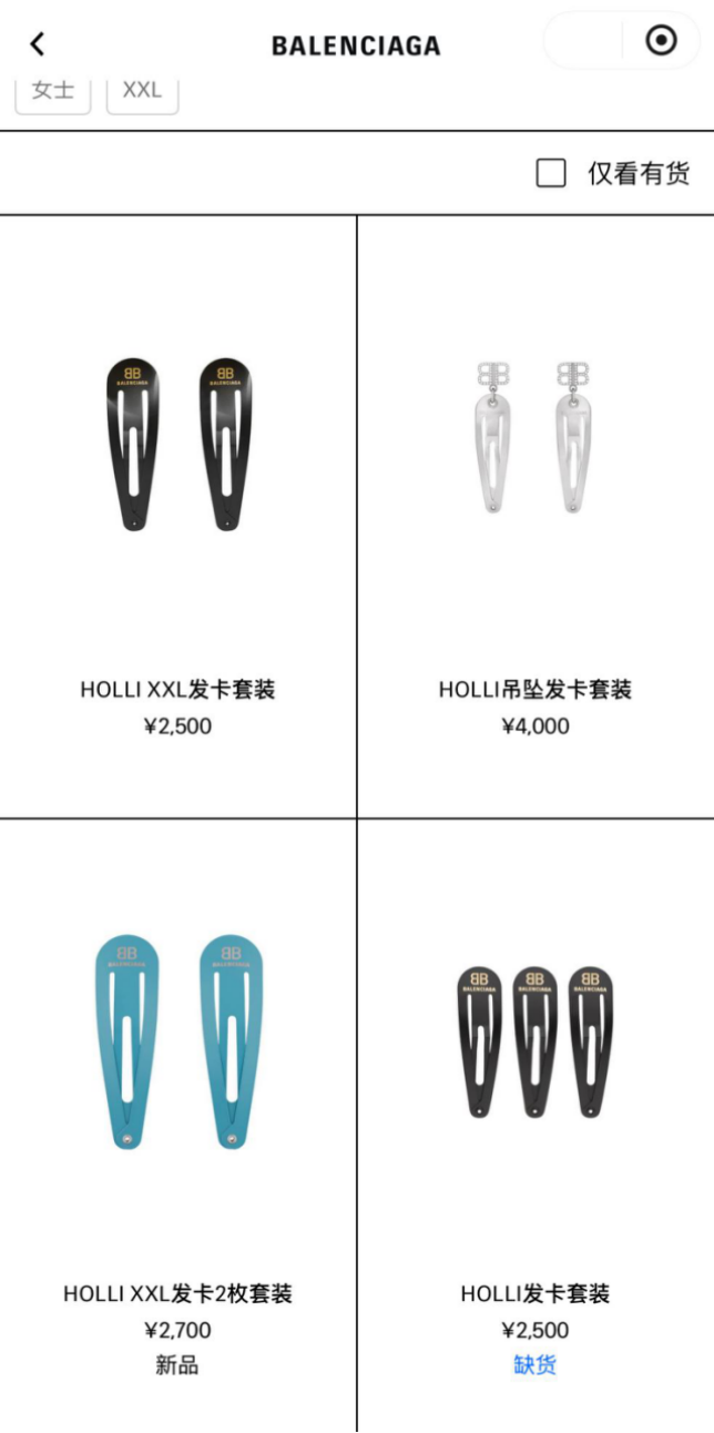 我们发现了一个比较割裂的点,天价发卡的口碑似乎并不好,但销量却意外的并不差。因库存紧张引发疯抢,巴黎世家官网显示,金属发卡开售不久便卖断货了。