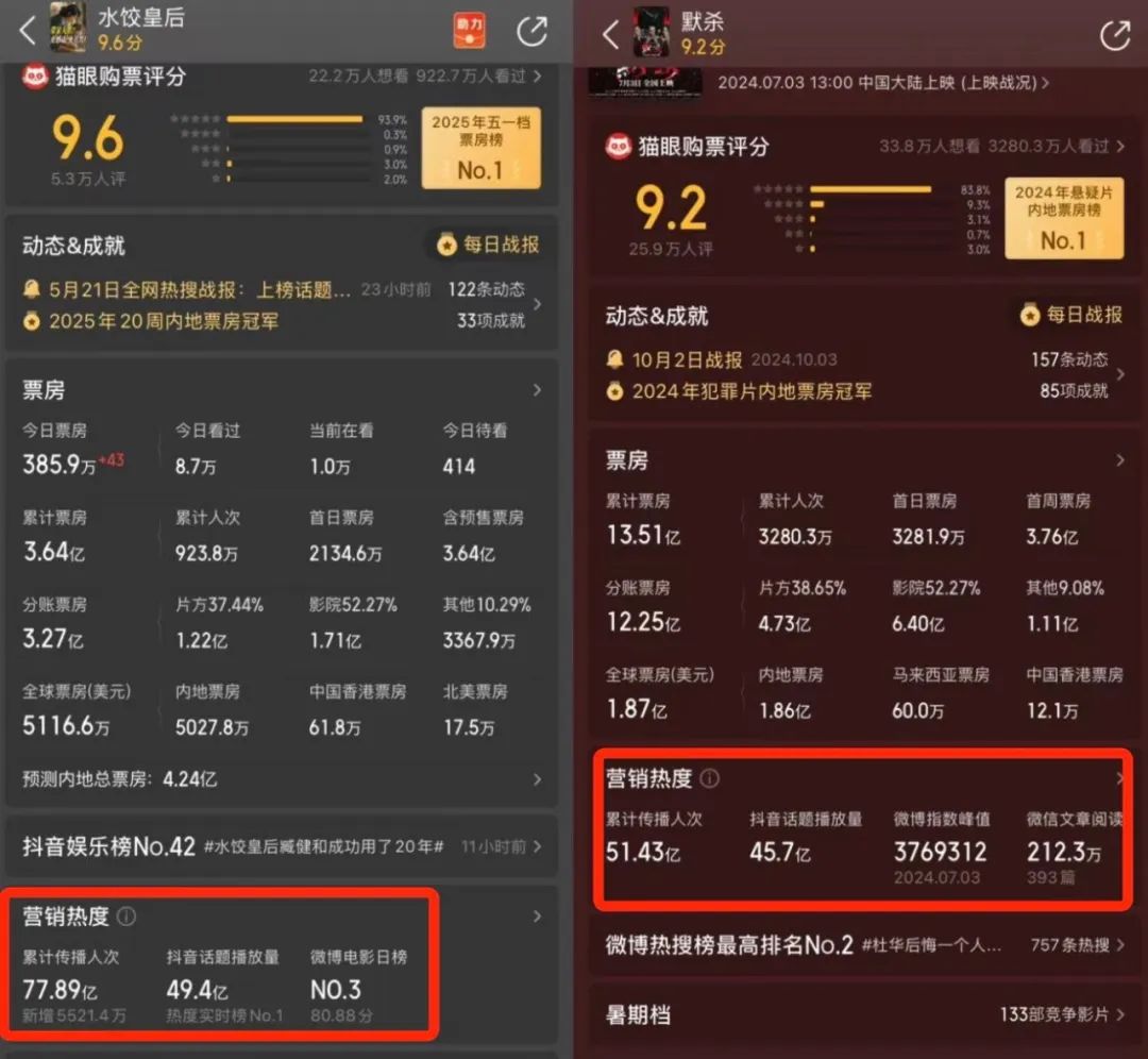 而且,当短视频营销改变了大众与业内的认知、电影公司已经把宣发大头预算给到短视频时,短视频平台也不再需要“特殊照顾”电影品类了。以前是做“案例”,买一点流量送海量的推流,现在是买多少给多少。