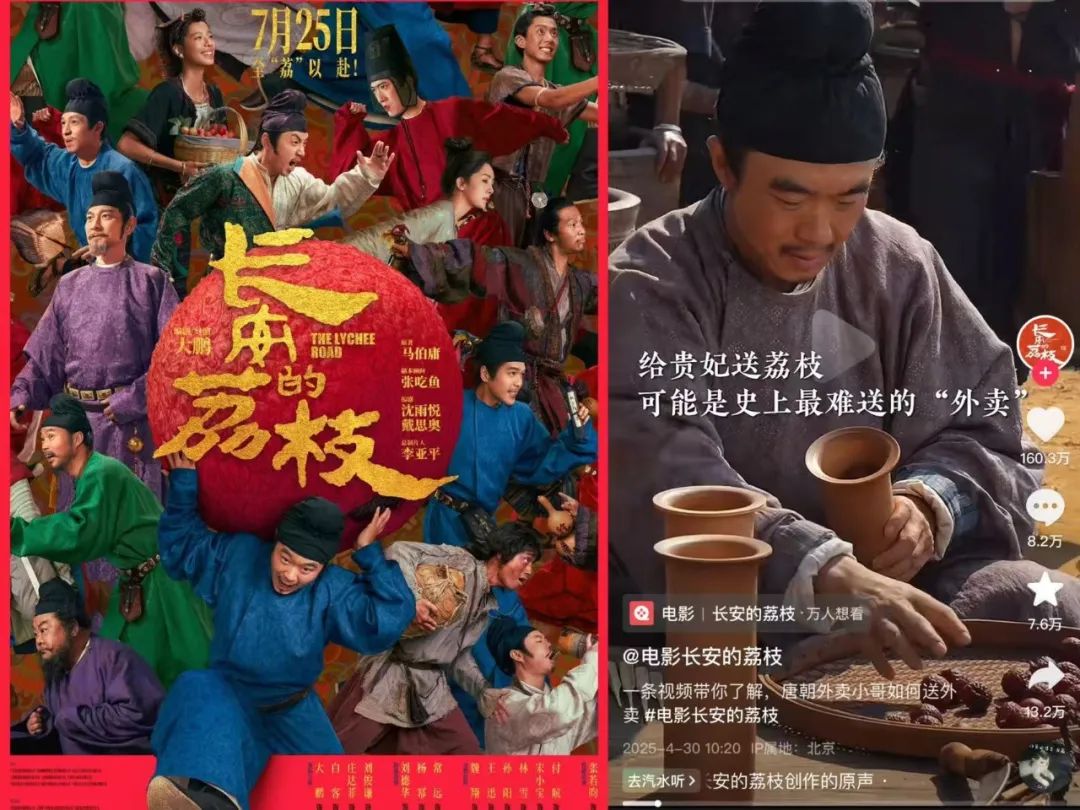 相对来说,暑期档古装喜剧片《长安的荔枝》宣发表现尚可。全明星阵容的海报呈现比较有创意,短视频也是围绕“送荔枝”的内容做,群众则在评论区激烈讨论“荔枝到底是杨贵妃要吃,还是皇帝要吃”。