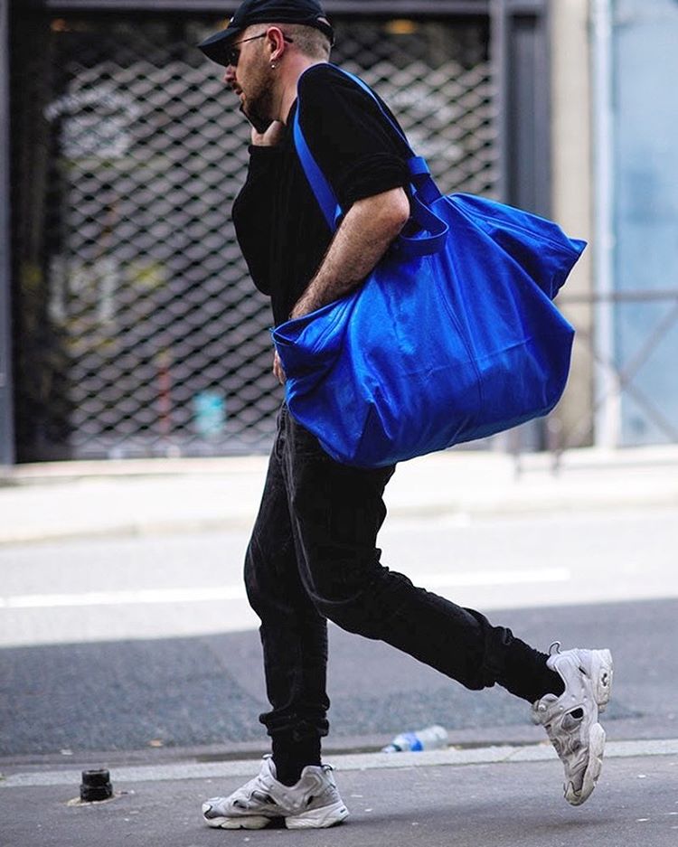 实际上,这套创意广告的指向,是和宜家不挨边的Balenciaga。4月中旬,该品牌发售了一款皮质超大蓝色手提袋——该手袋的首次亮相,是在去年的Balenciaga 2017春夏男装秀场上。