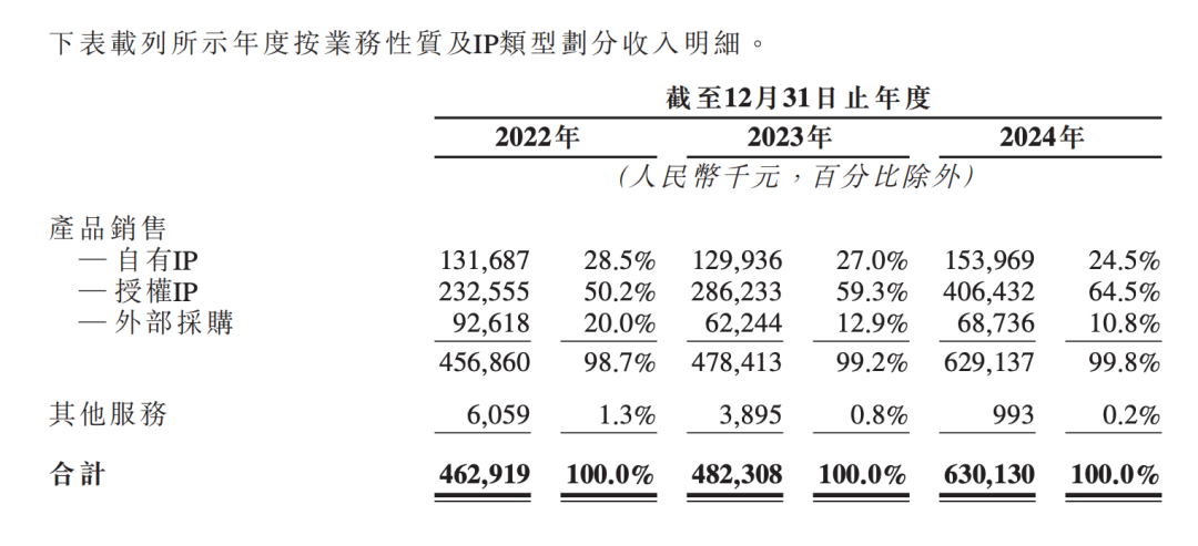 拆解收入结构可见,公司的绝大部分收入来自产品销售,包括基于自有IP及授权IP的52TOYS品牌产品及若干采购的第三方品牌产品,亦有少量收入来自其他服务。
