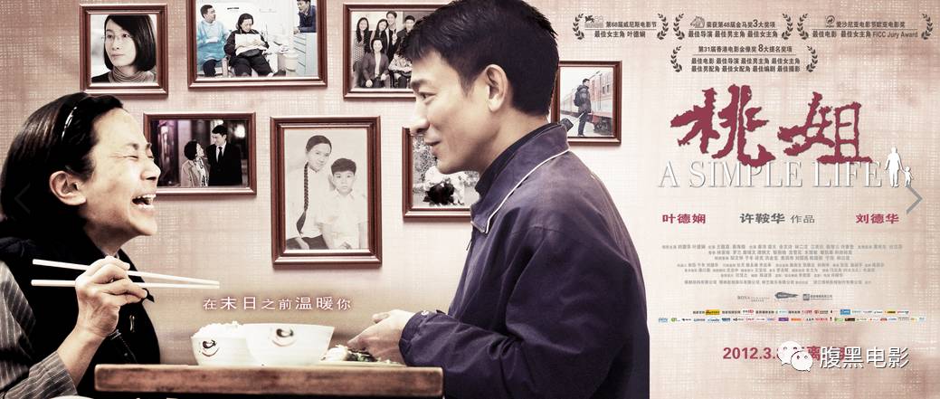 《桃姐》将镜头对准了香港的养老院,用细腻的电影语言讲述了一对主仆之间那种不是亲情又胜似亲情的感人故事。全片都没有什么强烈的戏剧冲突,表现的也都是柴米油盐酱醋茶之类的生活细节,大体故事很简单。本来桃姐一直和罗杰(刘德华饰)住在一起,照顾他的饮食起居。但因为屡次中风的缘故,桃姐行动艰难。因为身为制片的罗杰业务繁忙,其他的家人又在国外,桃姐被送到了养老院。此后,罗杰开始恩情反哺,尽所能的陪伴照顾桃姐直到她生命的最后。片子的叙事真实,总是能从细节打动观众。比如在片子开始不久,桃姐准备了很有品味的饭菜,罗杰一声不吭的坐下直接开吃。在到吃完后两人毫无顾忌的对话“我已经很久没吃过牛舌了”“那就不要吃了嘛”然观众能够明显的感觉到两人的关系像是母子而不是主仆。