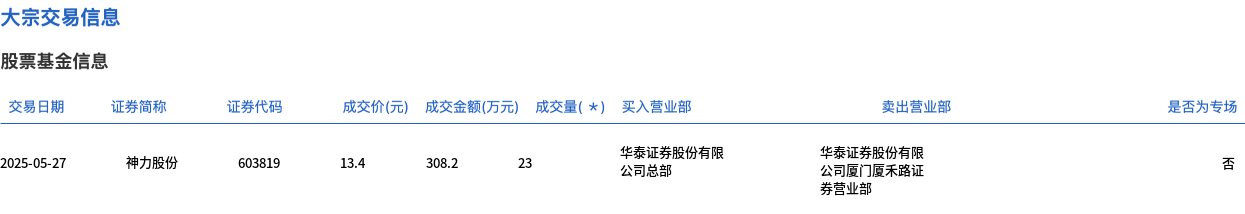 神力股份今日大宗交易折价成交23万股,成交额308.2万元