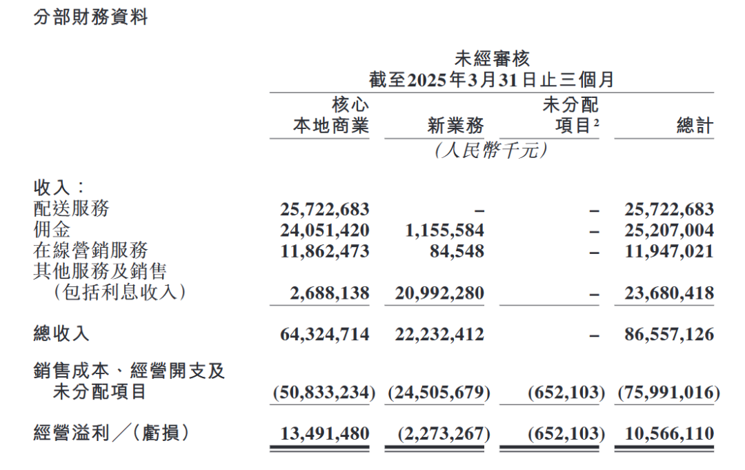 另一块是新业务,涵盖软硬件服务(美团SaaS、共享单车、充电宝等)、食杂零售业务(快驴、小象超市、美团优选等)和海外业务。因为“新”,需要坚持投入,所以新业务仍然走在入不敷出的路上,减亏就是胜利。
