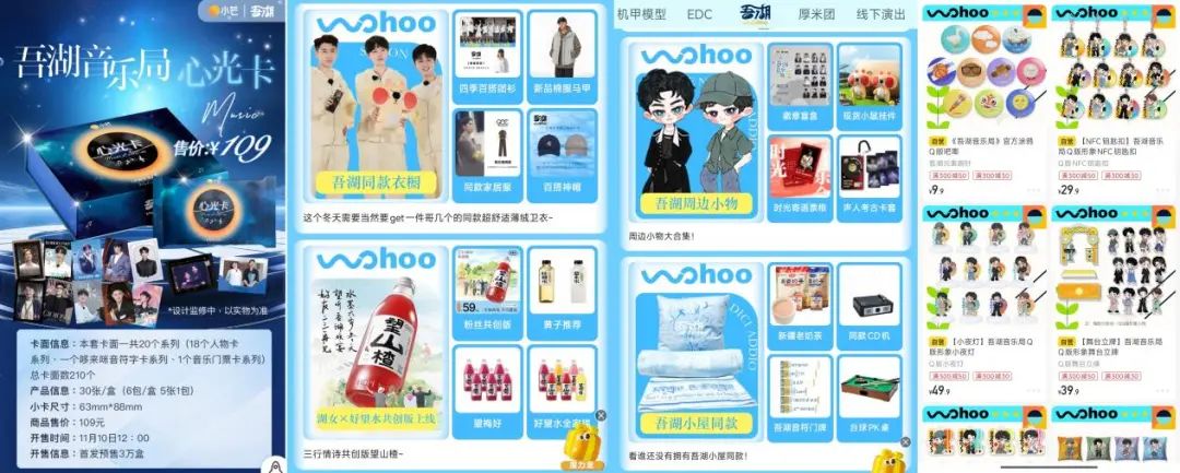 强粉丝粘性,加上小芒电商成熟的衍生开发体系,芒果TV的微综艺在C端上的玩法主要是节目周边售卖。比如《吾潮音乐局》就有同款服饰,Q版钥匙扣、小夜灯、冰箱贴等周边小物,以及小卡、CD礼盒、徽章盲盒等等。据芒果超媒2024年财报显示,小芒电商年度GMV达到161亿元,4年复合增长率达到125%,南波万服饰、IP小卡等在同类产品中均排行业前列。由此可见,微综艺的周边衍生开发定是一片潜力巨大的蓝海。