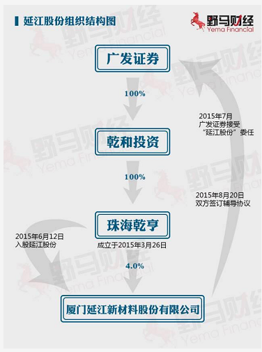 在珠海乾亨入股延江股份后的第二个月,也就是在2015年7月,广发证券接受延江股份的委任,担任延江股份首次公开发行股票并在创业板上市的辅导机构,双方于2015年8月20日签署了《辅导协议》,并于2015年8月28日向证监会厦门局申请延江股份辅导备案登记及上网公示。
