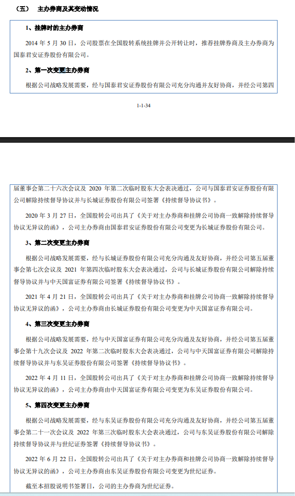 值得注意的是,在申请IPO前,华曦达自2020年起更换了四次主办券商。据悉,在2020年3月,华曦达将挂牌新三板的并持续督导近六年的国泰君安更换为长城证券;2021年4月,又从长城证券变更为中天国富;2022年4月,中天国富变更为东吴证券;两个月后的2022年6月,主办券商从东吴证券变更为世纪证券。