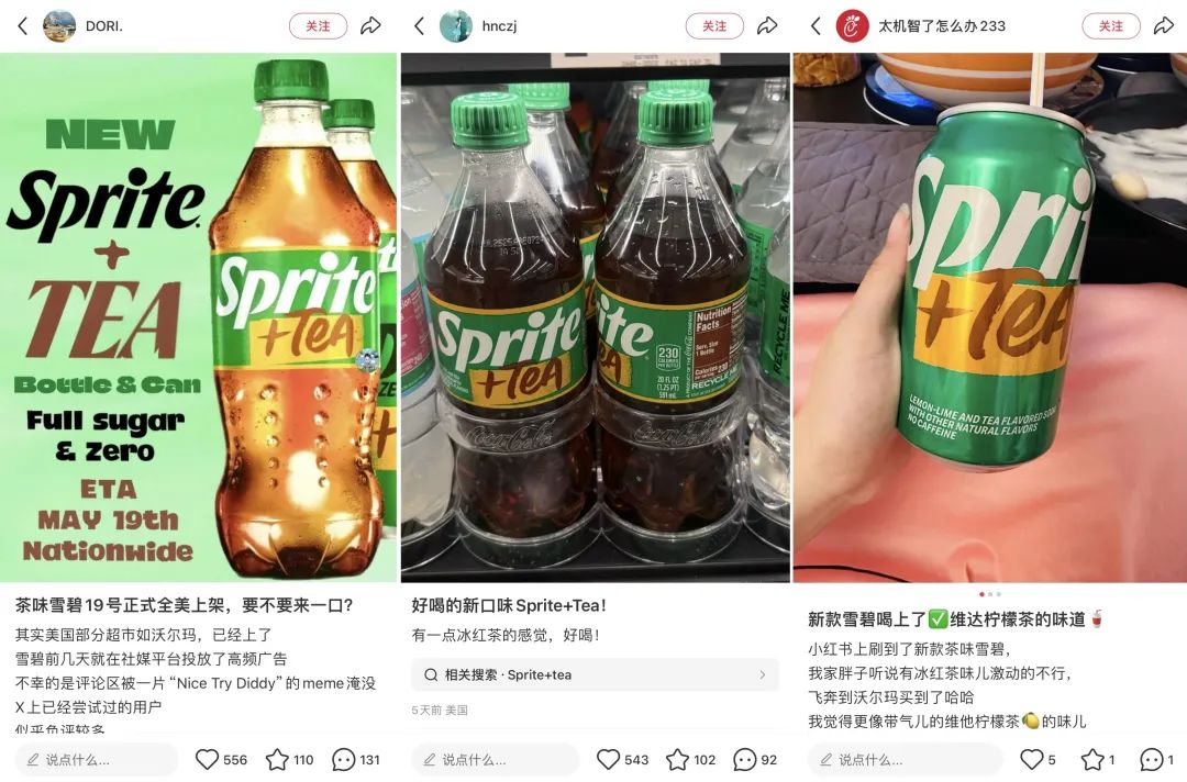 也已经有海外华人在国内社媒平台发布了这款产品的测评,有人评价“像气泡版的冰红茶”“类似冻柠茶”“没有常规雪碧那么甜”。“冰红茶”的描述一出,瞬间击中了不少华人的味觉兴奋点,表示高低得去试一下。