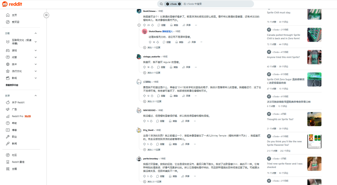 这种独特的风味体验进一步强化了雪碧粉丝钟爱的“清爽”口感,每一口都有更强烈的冰爽感受。在美国最大的在线论坛社区Reddit,不少网友表达了对这款产品的喜爱,称其和普通的雪碧完全不一样,有一种独特的清爽感,樱桃味的点缀很独特;甚至有人表示本来不喜欢雪碧,但这款冰爽版雪碧清爽的回味完全征服了TA;还有网友表示TA已经对这款新品彻底上瘾了,但它怎么可以是限量款呢!