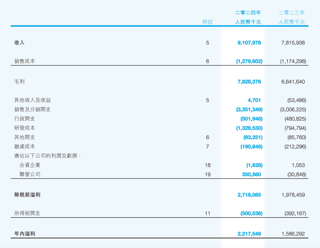2024年年报显示,三生制药业绩表现强劲,营收91.08亿元,同比增长16.53%;归母净利润20.9亿元,同比增长34.93%。值得一提的是,三生制药的毛利率维持在85%的水平,堪比贵州茅台91%的毛利率。