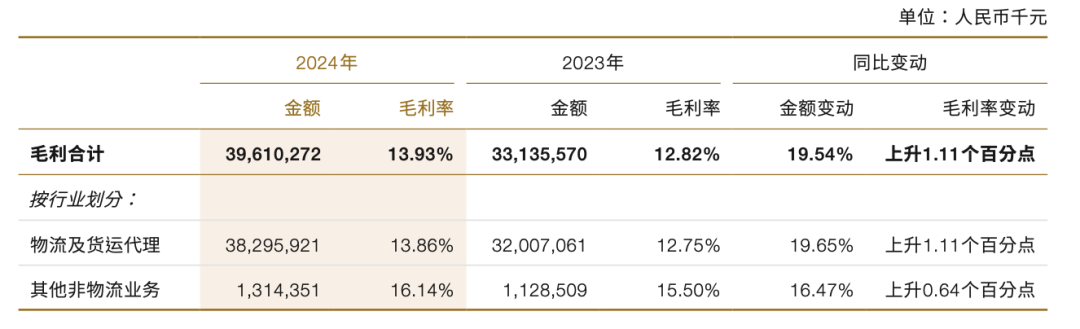 整体看,2024年,顺丰的营业成本为2448.10亿元,较2023年同期增长8.67%,但在总营收的占比为86.07%,相比2023年同期的87.17%还有所下降。
