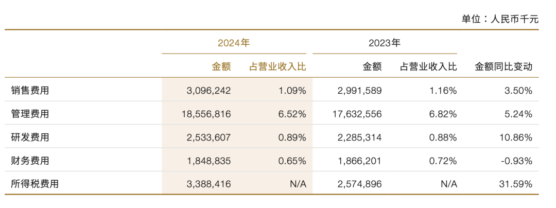 此外,除了研发费用的总额和营收占比有所增长外,2024年,顺丰的销售费用、管理费用和财务费用在总营收的占比均有所下跌。