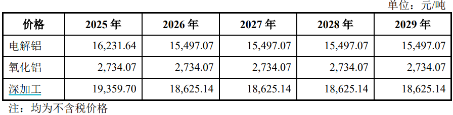 根据宏拓实业自身的规划预测,公司电解铝销售收入自2025年逐年下降,公司将原本可以对外销售的电解铝进一步加工至深加工产品以提高附加值,所以深加工产品收入有所增长。