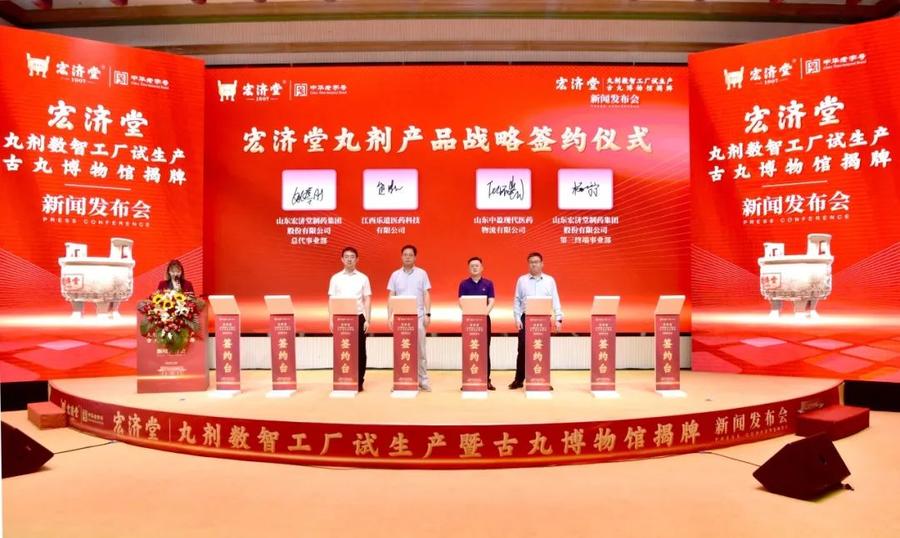 在发布会现场,山东信宏仁、漱玉平民、老百姓大药房等9家医药连锁巨头纷纷与宏济堂签订战略合作协议,标志着数智化升级后的丸剂产品将加速触达终端市场。