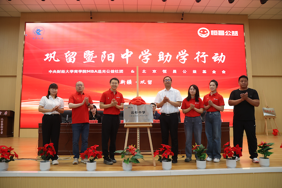 2025年5月28日,北京恒昌公益基金会(简称:恒昌公益)携手中央财经大学商学院MBA追光公益社团,为这所边疆学校的孩子们带来了他们翘首以盼的体育装备与学习物资。在热烈的掌声和期盼中,恒昌公益第八所“云杉校园”暨第三所“云杉中学”正式揭牌。与此同时,秉持“恒益未来 共筑优学”理念的首支“云杉足球队”也在此诞生——这不仅是一支球队,更是为边疆少年们插上的奔跑翅膀,引领他们向着更广阔的未来启航!
