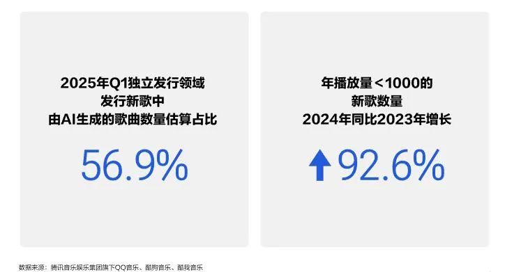 一边是AI狂飙,新歌产量创下五年新高,年产量飙到135.1万首;一边是听众口味多元化,播放量破千万的歌曲一年就多了1095首。
