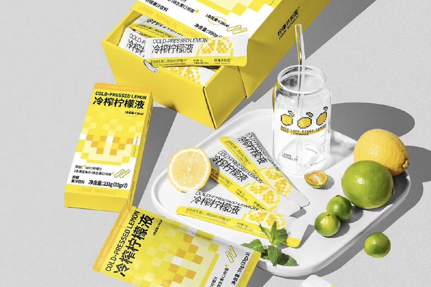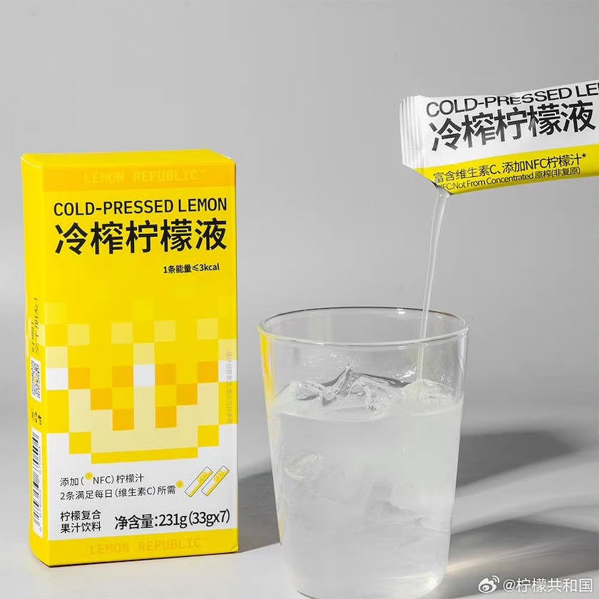 柠檬液是一种由柠檬制成的浓缩液体,通常通过冷榨等工艺生产,可以保留柠檬的天然风味和营养物质。目前市场上大部分品牌多以低卡、补充VC为卖点,并采用条状小包装形式,以满足便携及多场景使用。