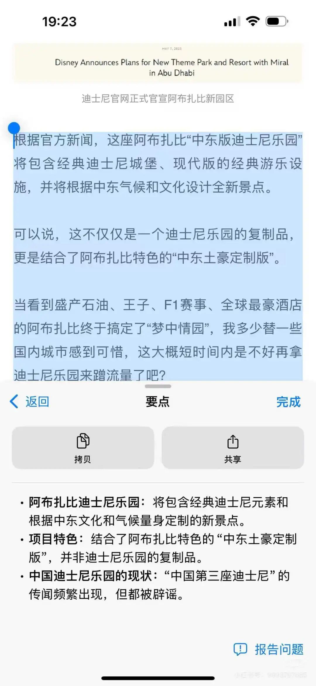 用户用Apple Intelligence要点提取功能,输出的结果不佳。